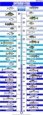 Based on the water temperatures they need, fish species can be grouped into three broad fish communities: cold water, cool water and warm water. But please note that there is a certain amount of overlap among these broad community types. For example, during the summer when waters are at their warmest in Ontario, it is not uncommon to find some cold water species living in the same areas as cool water species, or cool water species living in the same areas with warm water species.
