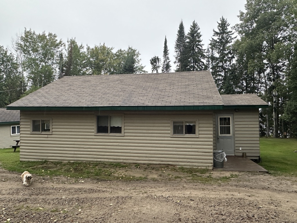 Cabin #5 combines original character with updated comfort, making it a favorite for many returning guests. Two bedrooms hold six twin beds, including two bunks, plus space for two cots near the entrance. A large living room and open kitchen create an easy gathering spot. The three-piece shower bathroom and walk-in mudroom style porch keep wet boots, rods, and gear out of your main living area so everything stays dry and organized inside.
