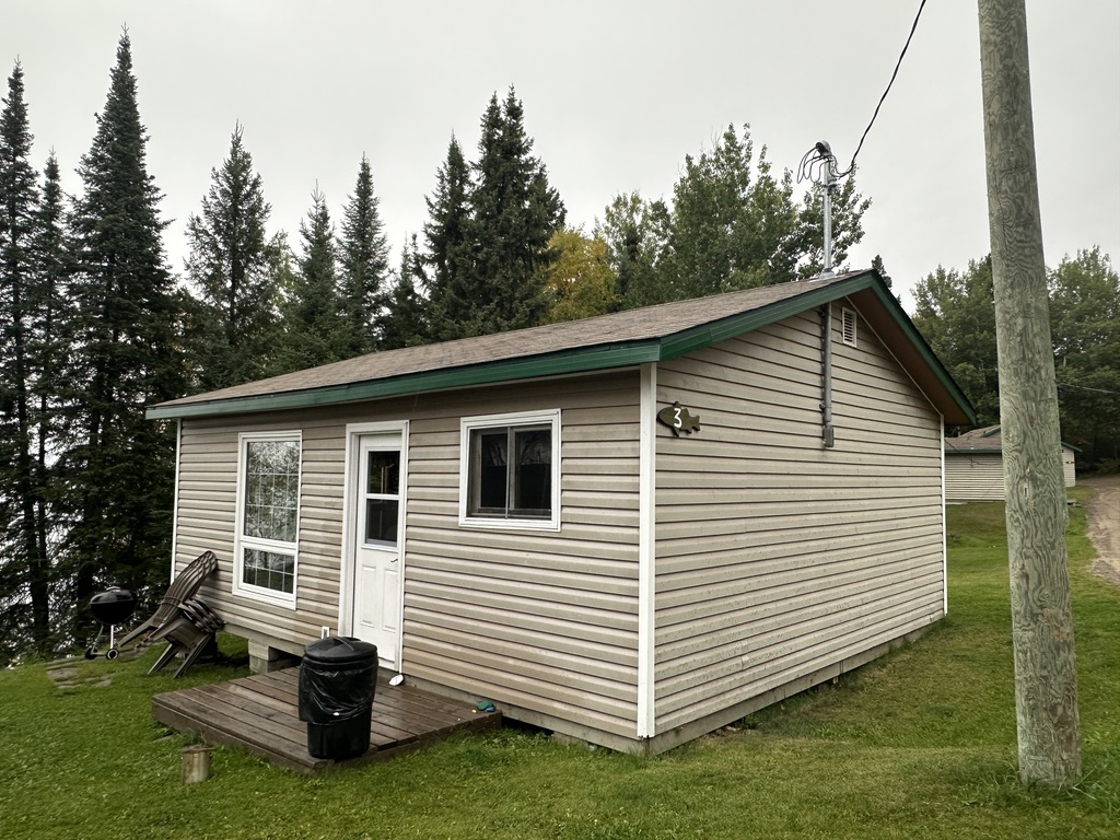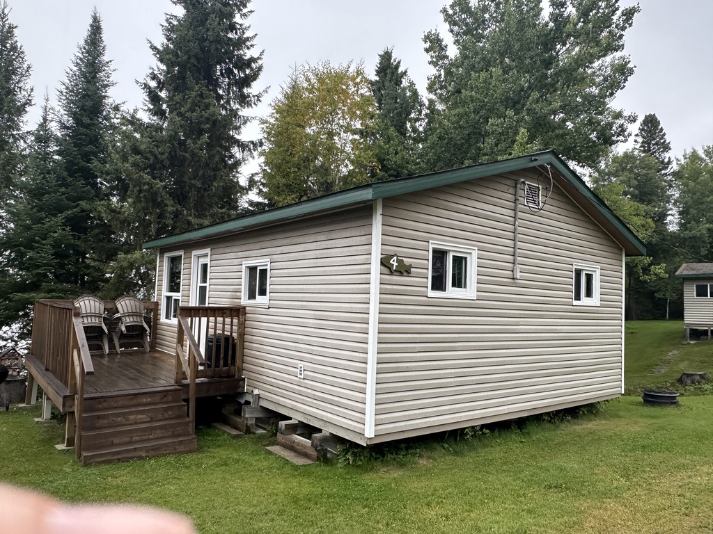 Cabin #4, another comfortable 1980s build, is ideal when your group needs six separate twin beds across three bedrooms. After a day chasing walleye or pike, you can relax on the deck, swap stories, and watch the light fade over the trees. Inside, there is a handy three-piece shower bathroom, making it a good choice for families or fishing friends most evenings here.