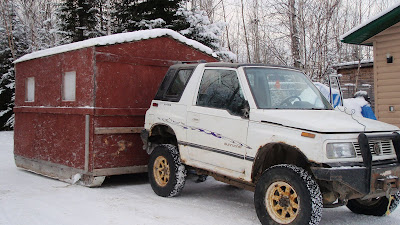 Yes the season is coming and we are getting ready for some ice fishing. This old ice hut is still holding together with some TLC we might get a few more years out of it.