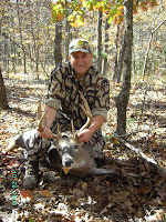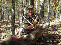The Buck I got with my bow on Oct. 26th. I found an awesome deal on a brand new 2007 model Diamond Black Ice bow on ebay. This was the first time I hunted with it along with Rage broadheads. They both did a number on him!