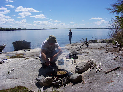One thing that everyone loves is having a fish fry on Pakwash Lake for lunch. Find a rock or a beach and it makes every fishing trip complete. It was a Perfect day with 75F sunshine weather.
