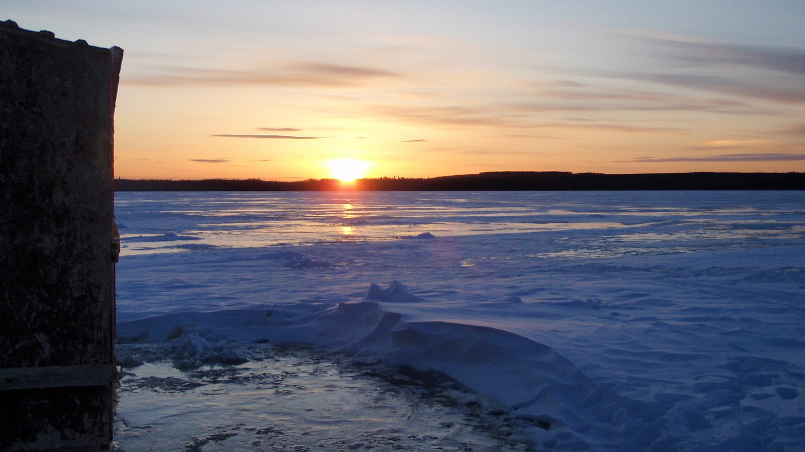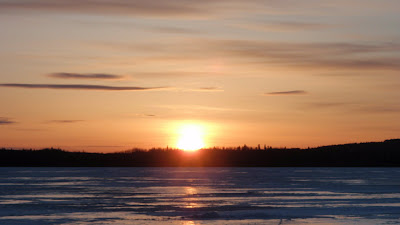 Ice fishing tip, make sure you bring your camera. Take a look to the west and see the sunset and take a look to the east and see the man on the moon. Wow talk about Northwestern Ontario scenery! Ear Falls and Red Lake Ontario is enjoying a week of great ice fishing weather, and the ice is melting quickly.