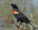 The Red-Winged Black Bird visited the Bird Feeder today. I saw 4 of them. Fast little guys.