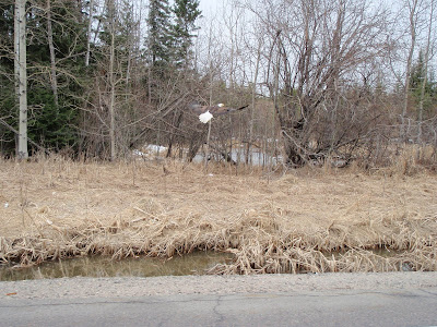 Yes we get to go out of town every once and while. The big outing this weekend was Kenora to shop. Oh it wasn’t fun shopping, it was for Garbage Bags, Laundry Soap and cleaning supplies…. Yes we did have fun, visited friends in Kenora. Tried to take pictures for the Blog. We also took a note on how the snow and ice was in Kenora compaired to the Ice on Pakwash. Kenora’s riverways are opened up and the ice has broken away from the shore. Pakwash is usually two weeks behind Kenora so that’s hopefull. Our weather this week warms up by thursday. Most of the Earfalls Snow has melted. Still the shoreline of Pakwash Lake is attached but only cracking as of yet. We would like some warm windy days mother nature Please! Here are some pictures from HWY 105 & Kenora Deer. Downtown Kenora we say 5 deer behind the Safeway on the train tracks.