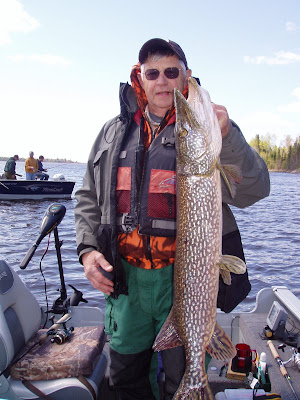 Great Fishing today Dave and Mike Olson caught 15 Northern and the boys behind caught over 20 Northern. Canada has great spring Northern fishing.